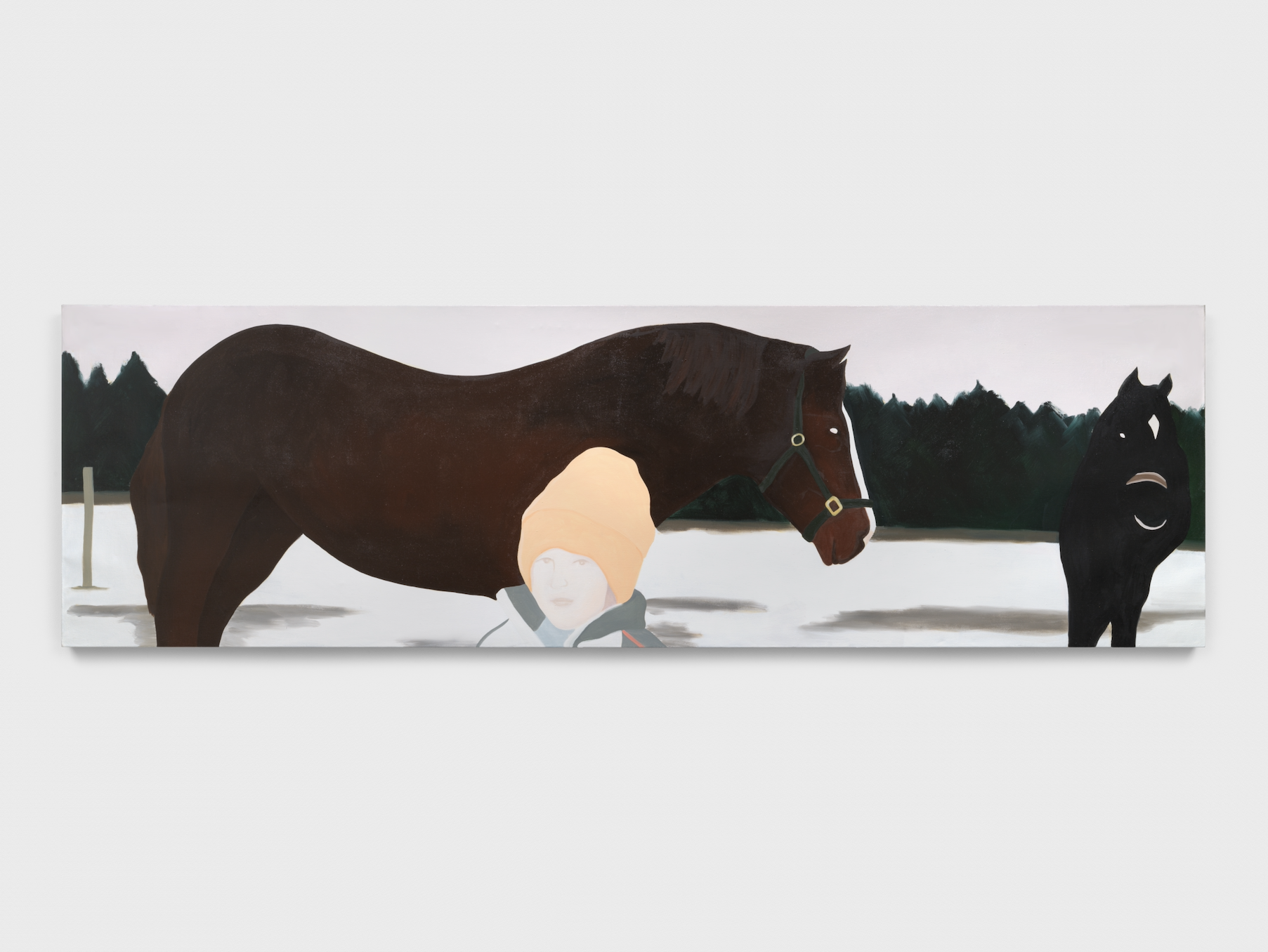 Anderson’s large-scale paintings imbue fleeting childhood memories with a sense of nostalgic longing. Her flattened figures and serene color palette evoke distant intimacy, with off-centered, emotionally ambivalent subjects. In contrast, Rintsch’s paintings delve into intense emotions and the complexities of human relationships. Her delicate watercolor brushstrokes convey vulnerability and transience, offering an intimate counterpoint to conventional portraiture.